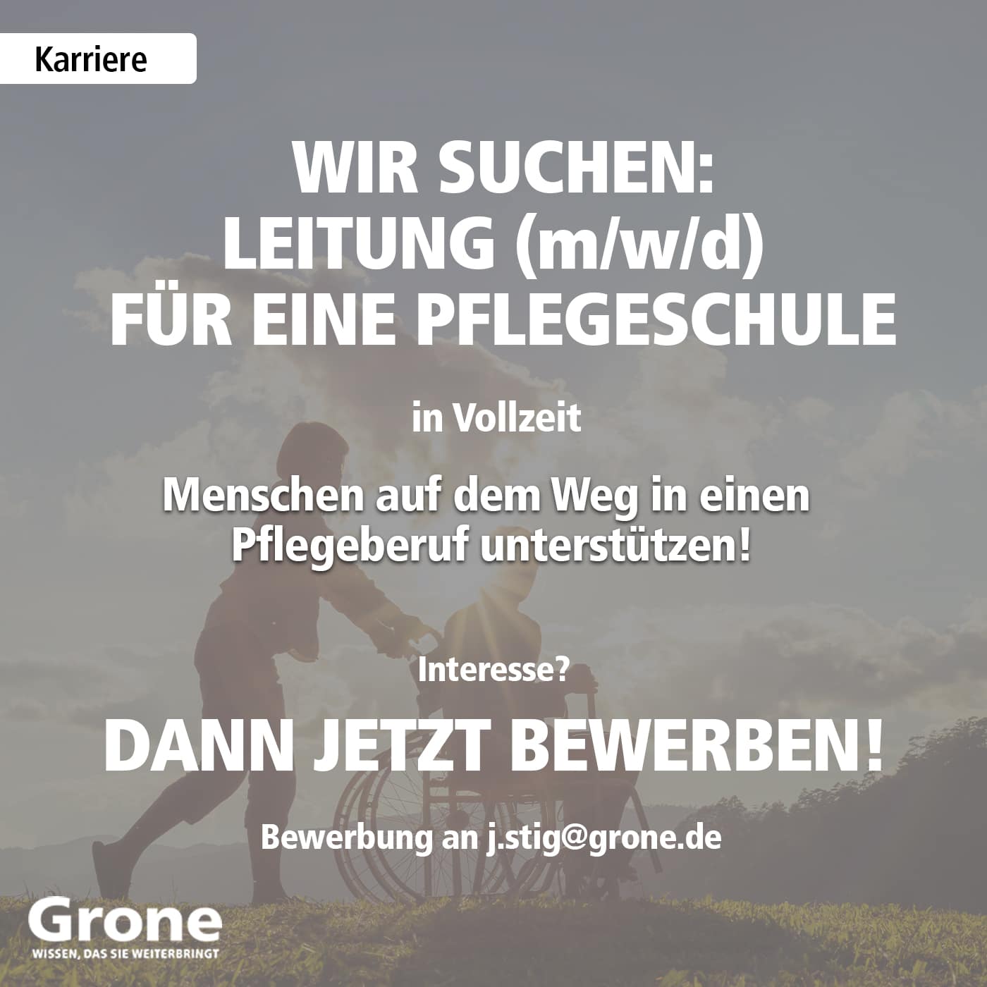 Bitte richten Sie Ihre Bewerbung mit Angabe Ihres möglichen Arbeitsbeginns und Ihrer Gehaltsvorstellung per E-Mail an j.stig@grone.de.